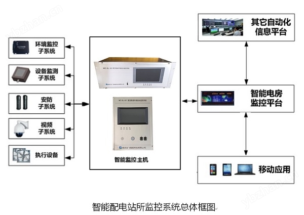 配变电环境综合监控系统由智能监控平台、数据传输系统、智能监控主机、各监测子系统及执行子系统等部分组成,现场传感及执行单元采用通过智能监控终端经数据传输系统接入到管理平台。